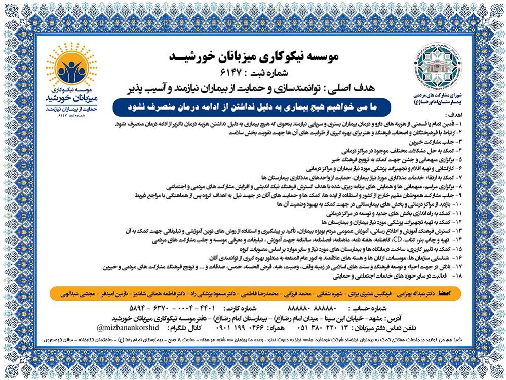 توضیح اساسنامه موسسه نیکوکاری میزبانان خورشید