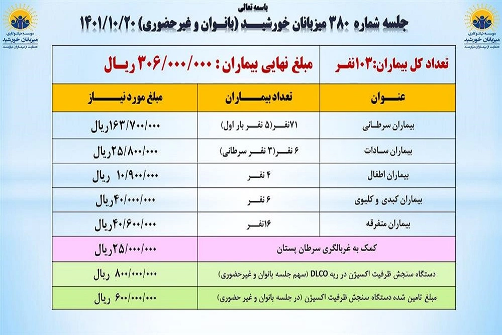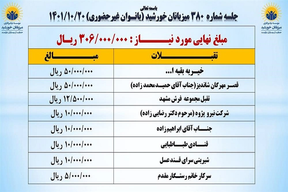 مبلغ مورد نیاز جلسه ۳۸۰: 306,000,000 ریال
